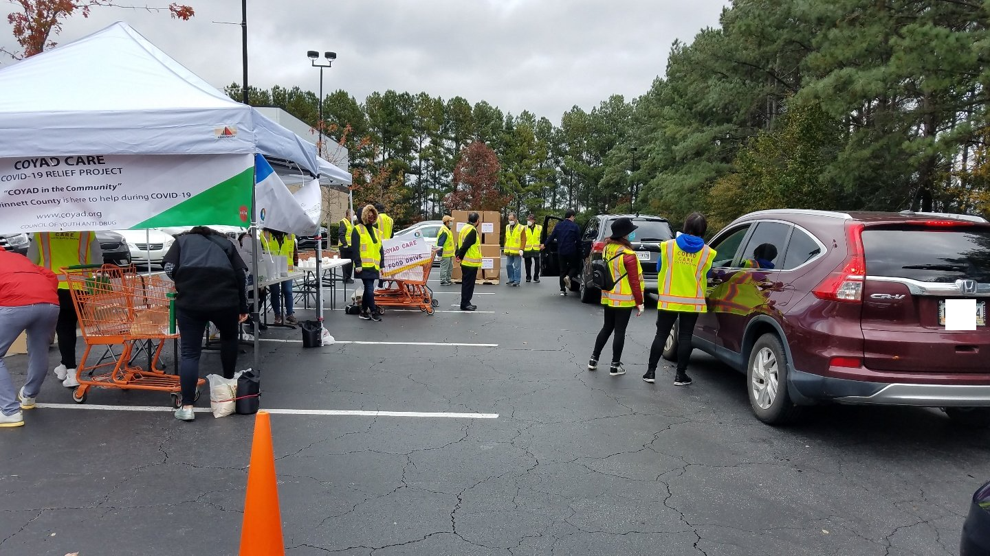 On Sunday December 20, 2020 COYAD held the COYAD CARE Food Drive ROUND 3. COYAD teamed up with Gwinnett County to help the community residents that were significantly impacted by COVID-19. COYAD staff members organized the third round of the three food drives where we gave 300 residents and/or families an opportunity to receive $100 worth of food and one $50 vouchers for Zion market. Many volunteers participated and helped out delivering the food boxes to the recipients.